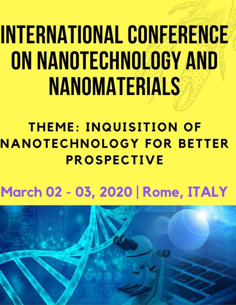 Herald Meetings takes pleasure in inviting the scientific community across the globe to attend the International Conference on Nanotechnology and Nanomaterials during March 02-03, 2020 at Rome, Italy around the theme "Inquisition of Nanotechnology for better prospective"