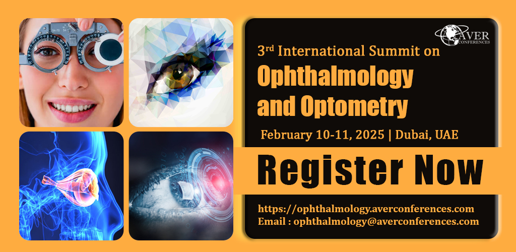 We are inviting ophthalmologists, ophthalmology specialists, eye specialists, eye surgeons, students, and more to join the ''3rd International Summit on Ophthalmology and Optometry'' which will be held on February 10-11, 2025 in Dubai, UAE.