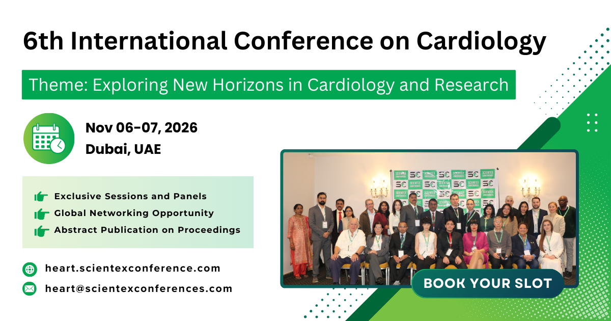 Join us at the 6th International Conference on Cardiology, a global platform for leading cardiologists, researchers, and healthcare professionals to discuss groundbreaking advancements in heart care and research.