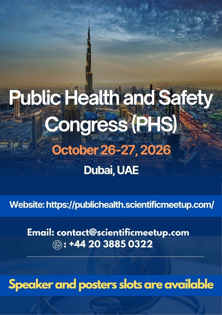 We are honoured and delighted to welcome the distinguished speakers, delegates, clinical and medical professionals, researchers, and industry leaders from all around the world to participate in the 2nd Edition of Public Health and Safety Congress (PHS) during October 26-27, 2026 which will be held in Dubai, UAE.